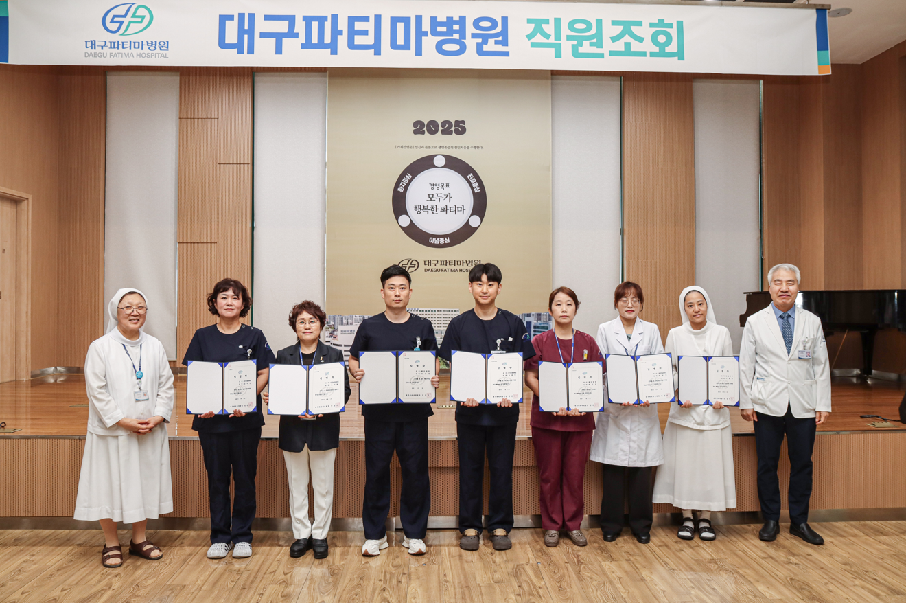 대구파티마병원은 9월 8일(월) 오전 8시 본관 4층 링크홀에서 전 직원을 대상으로 2025년 9월 직원조회를 개최하였다.